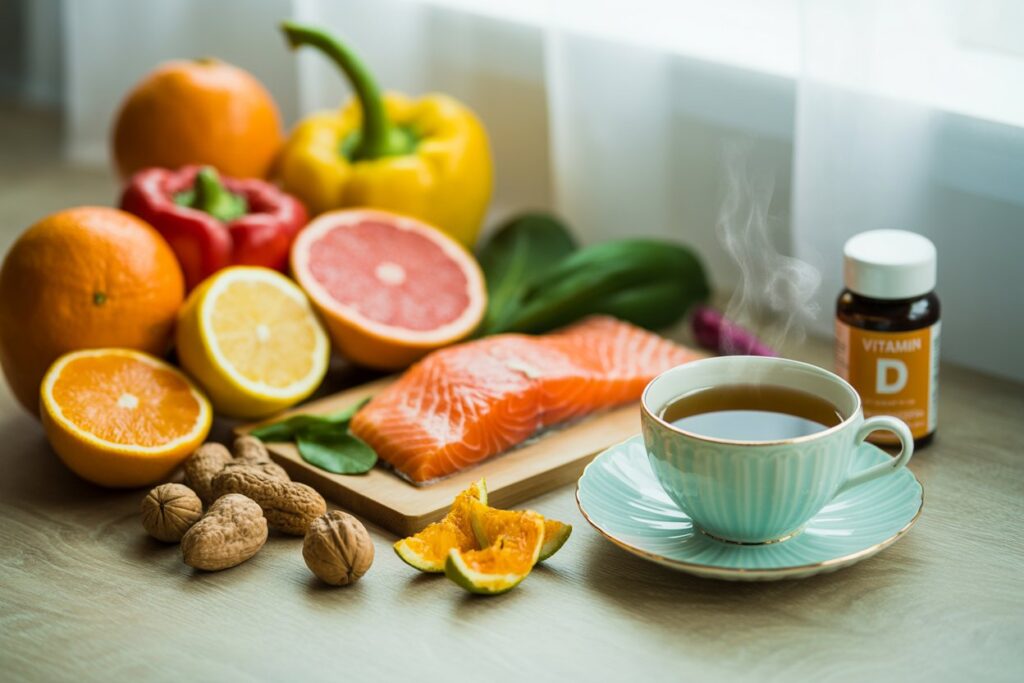 Vitamina D suficiente: Este nutriente esencial modula tanto la respuesta inmune innata como la adaptativa. La deficiencia de vitamina D se asocia con mayor susceptibilidad a infecciones respiratorias. La exposición solar moderada y la alimentación rica en pescados grasos, huevos y lácteos fortificados contribuyen a mantener niveles adecuados.